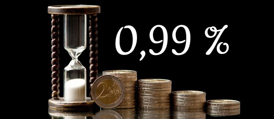 Au deuxième semestre 2015, le taux de l’intérêt légal s’établit à 0,99 % pour les créances dues aux professionnels. -
